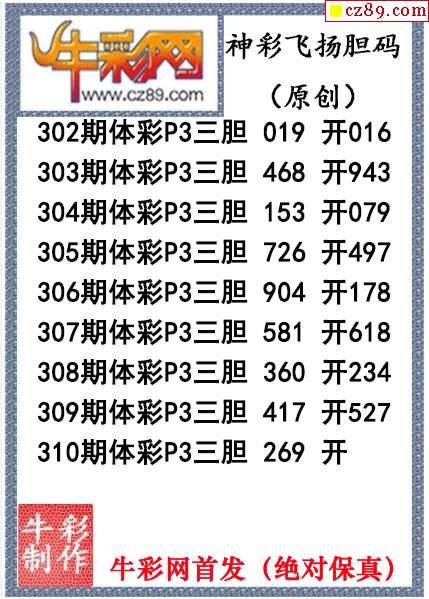 > 神彩飞扬三胆310期体彩P3图谜(原创)